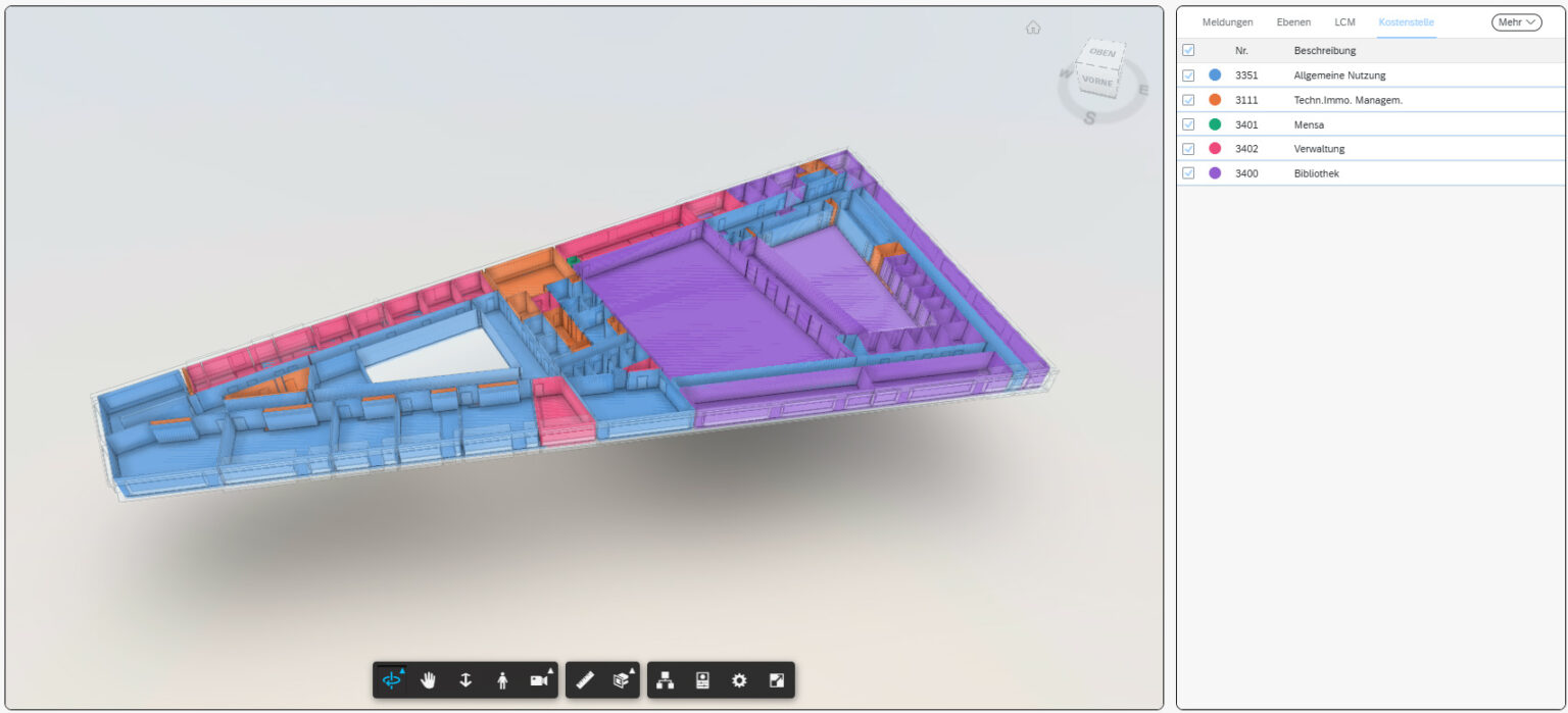BIM@FM bietet Ihnen ein umfassendes Werkzeugset für ein ganzheitliches Flächenmanagement, von der operativen Umsetzung bis zur strategischen Planung. Zu den zentralen Funktionen gehören: